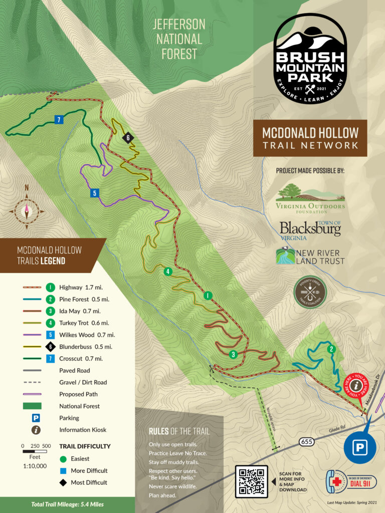 he Blacksburg Rotary Mountain Bike Park is a community effort, spearheaded by the Blacksburg Parks and Recreation Department. The primary purpose of this project is to establish an off-road experience in a structured setting that provides various riding opportunities and experiences to the public. The use of two key areas (Gateway and Huckleberry properties) maximizes the prospects for skill development, offering an experience that will appeal to a range of skill levels—from beginners to experts alike. More Information Here.
