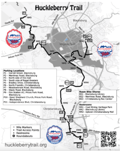 - Downtown Blacksburg (Harrell Street, Blacksburg) The Huckleberry Trail begins on Miller Street across the street from the Blacksburg Library.